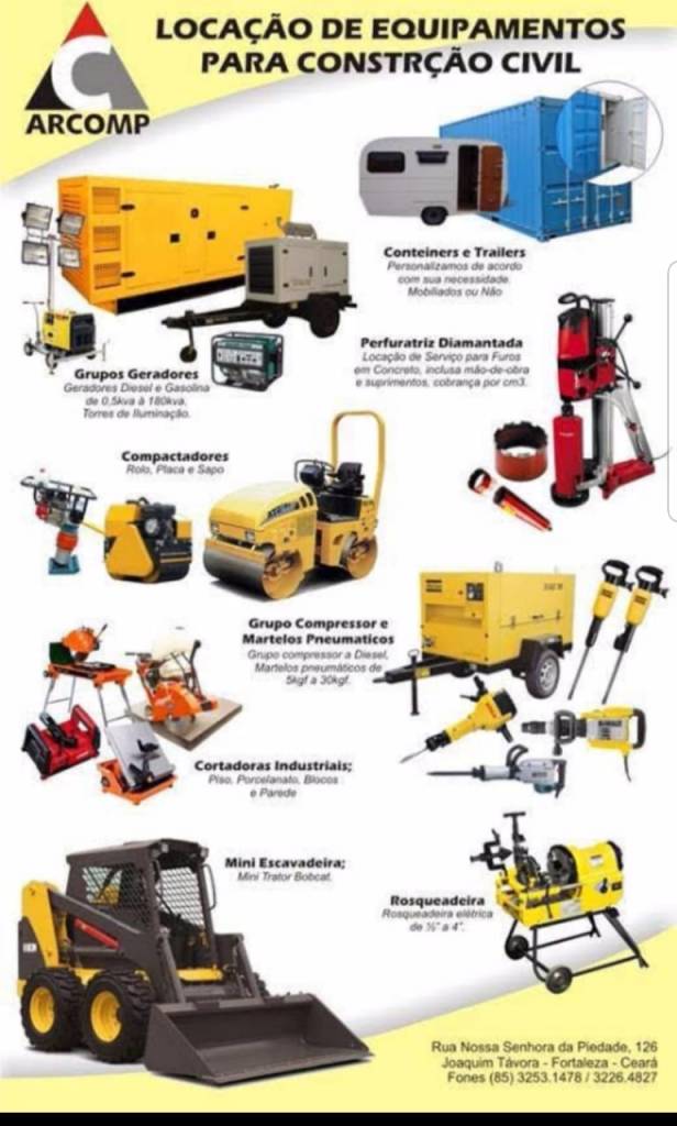 Edifique com a ARCOMP locações de equipamentos a construção civil.